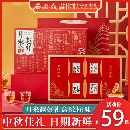 这款8饼6味月饼礼盒内含:白莲蓉蛋黄、广式黑麻蓉、金丝枣蓉、广式红豆沙、广式香芒、苏式清水玫瑰月饼。目前天猫商城西安饭庄食品旗舰店价¥69,下单立减叠加领取¥40优惠券,双重优惠实付¥19..07包邮到手。