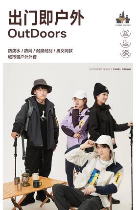 【下单立减120元!!】骆驼情侣款运动登山服,防风、防水、耐磨抗撕裂、加绒保暖,运动休闲随心搭,实体店一件要五六百,我们只要179,男女多款可选!!