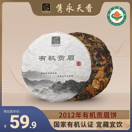 有机认证,隽永天香 2012年有机贡眉白茶饼 100g 券后39.9元包邮