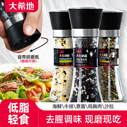 大希地 海盐黑胡椒研磨瓶装 158g *2瓶 多口味新低16.8元包邮
