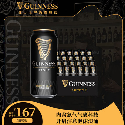 自带气囊科技,口感浓郁醇厚,绵密顺滑,冷藏后饮用更佳。目前这款醇黑啤酒440mL*24听装天猫商城GUINNESS健力士旗舰店售价¥300,叠加¥133优惠券,实付¥167包邮,本批次临期12月22日,喝完无压力,临期好价,介意慎拍。