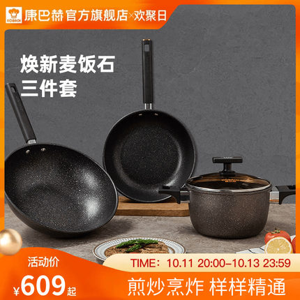 食品级麦饭石色不粘涂层,少油烟不粘,通用锅底,不挑炉灶。目前这款3件套天猫商城康巴赫聚客专卖店售价¥609,叠加¥440优惠券,券后实付¥169包邮,含30cm炒锅、26cm平底煎锅、20cm双耳汤锅,一套搞定。