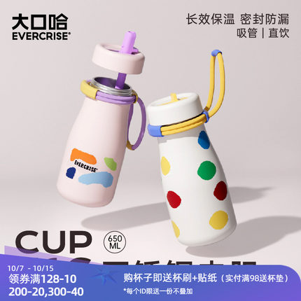 大口哈牛奶吸管杯大容量保温杯女生高颜值水杯2023新款evercrise 券后88元