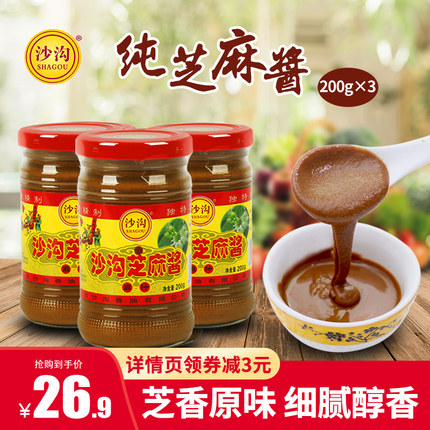 原料只有芝麻,0添加,口感细腻,香气浓郁,火锅蘸料,拌面,拌饭、凉皮等均可搭配。目前天猫商城200g*3瓶装 售价¥29.9,可使用¥10优惠券,实付¥19.9包邮