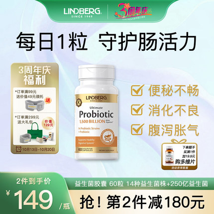 美国进口 LINDBERG利得盈养 益生菌软胶囊50粒 到手99元包邮包税 调理肠胃