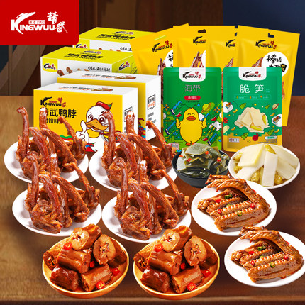 甜辣鸭脖、甜辣鸭翅、甜辣鸭腿、麻辣手撕脖、整根充氮鸭脖、香辣卤海带、麻辣卤豆干、麻辣卤花生、山椒味脆笋等多种口味任选7件,平均¥5.7/件。优质原料,大只肉厚,氮气保鲜,随享美味。