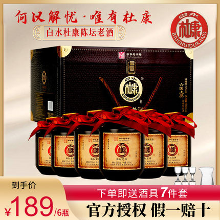 白水杜康 陈坛老酒 52度浓香型纯粮白酒500mL*6瓶皮质礼盒装(赠分酒器+酒杯*6)169元包邮