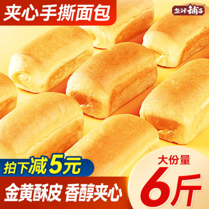 盐津铺子夹心手撕面包20包,金黄酥皮,香醇夹心,口感香软,满满的自然麦香~早餐一个就够了!营养又健康!!