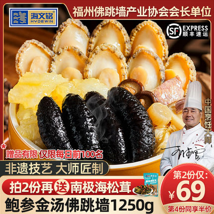 出口认证 海文铭 海参鲍鱼 金汤佛跳墙 1250g/件 拍2件;券后178元包邮 折89元/件 +赠南极海松茸