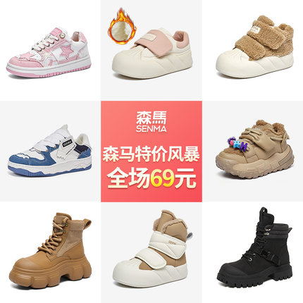 森马潮鞋,源自1993,几十款品牌情侣鞋,线下商场同款四百多,活动统统69秒杀!疯了啊,这价格很少见!小白鞋,老爹鞋,网红星星鞋,抖音毛面贝壳鞋,美拉德靴子等,男女都有,颜值与品质兼具,过年节日必备。快锁库存,挑几双,手慢无!