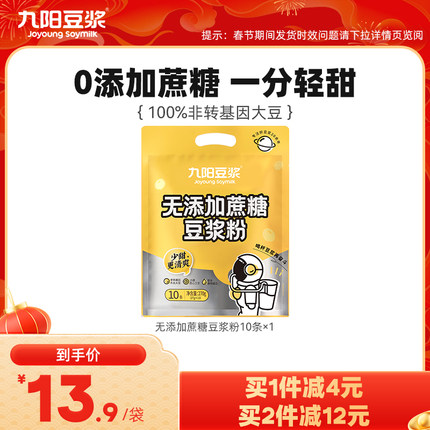 采用东北非转基因大豆,富含植物蛋白,不添加蔗糖, 热量低,适合健身达人,目前天猫商城九阳豆浆旗舰售价¥19.9,叠加¥8优惠券,实付¥11.9包邮。