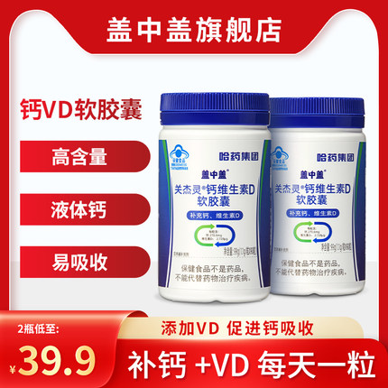 天猫商城盖中盖旗舰店2瓶售价¥79.8, 满1件打5折,可领¥10优惠券,实付¥29.9包邮,折合¥14.95/件。一粒相当于一杯牛奶的钙含量,每天一粒,全家共享。