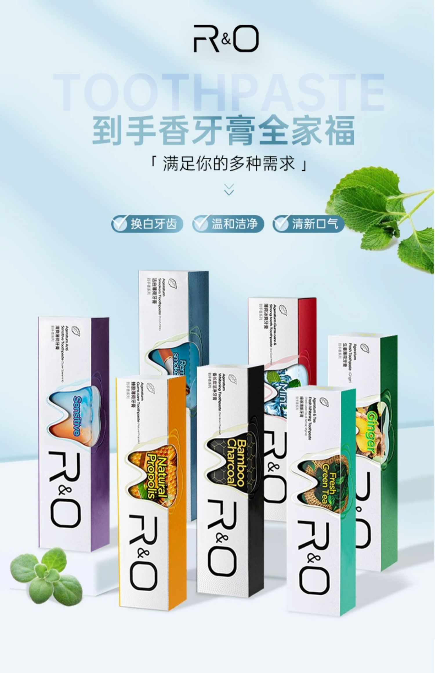这款 R&O 牙膏,天然植物成分能抗菌消炎止血,比氨甲环酸更安全健康,有效破坏口腔病菌生长环境,无氟配方,天然弱碱性,增加氨基酸浓度,中和酸性物质,减少牙齿腐蚀,减少蛀牙。去渍除味,不损伤牙釉质,