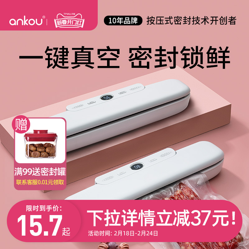 安扣 小型家用全自动抽真空封口机,30cm加长封口,支持多包工作,60kPa强劲吸力,搭配外抽管,适用市面常见保鲜盒、真空罐、气阀自封袋、红酒瓶等,食材保鲜、防止食物串味、回潮,必备神器。