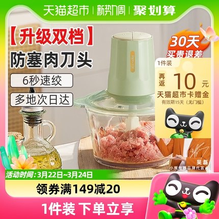 厨房神器,两档调速,6秒绞肉碎菜。目前天猫超市售价¥89.9(第一款),下单立减¥25,领取¥5优惠券,叠加¥5猫超品牌新客福袋,88VIP会员95折,再返¥10猫超卡,到手实付¥41.9包邮。
