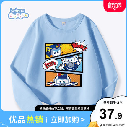 班尼路儿童长袖t恤,柔软舒适圆领版型,结合精美超级飞侠印花设计点缀,洋气百搭,新颖夺目。目前天猫商城balenojunior童装旗舰店售价¥150,下单2件立减叠加领216元优惠券(第2张券),实付44元包邮,折合¥22/件新低好价,100~160码全,男女童多款多色可选,春季打底外穿都不错。