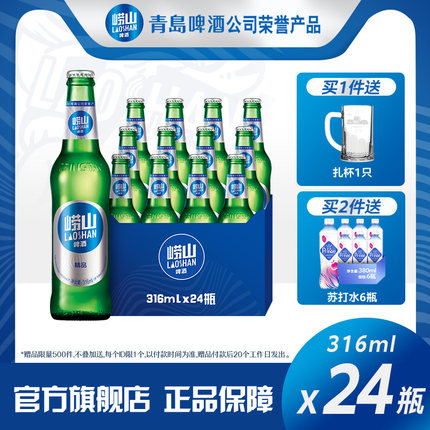 崂山啤酒 经典小瓶装316mL*24瓶*2件 赠苏打水380ml*6瓶79.8元包邮(1.7元/瓶)