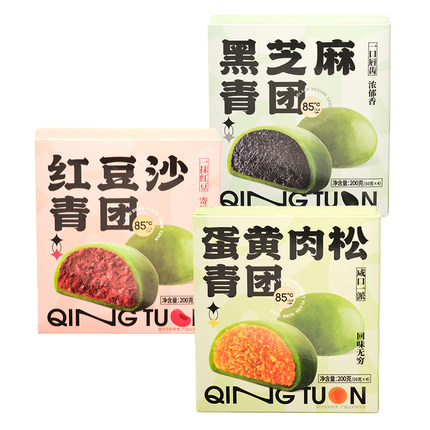 江南特产,85度C 红豆沙/黑芝麻青团 200g/盒,糯糯香甜,口感丝滑。目前天猫商城特价18元,拍2件立减0.2元,叠加20元优惠券,实付15.8元包邮2件。