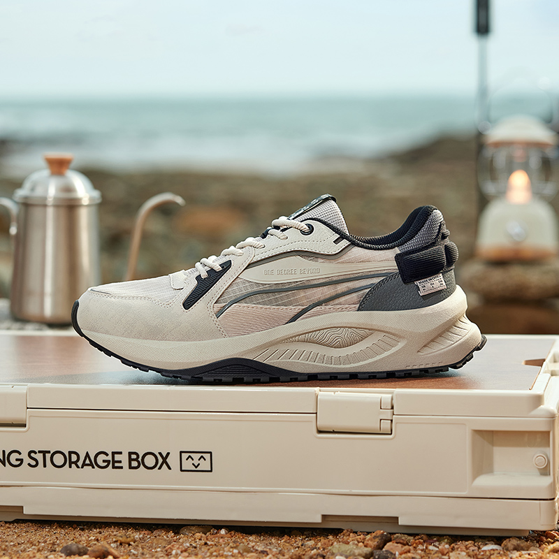 361° 运动鞋,双层包裹鞋头设计护趾舒适,鞋身大面针织赋予双足袜般贴合感,丰富的孔眼结构保,障鞋身透气性,一脚蹬结构减少因鞋舌位移造成的摩擦不适感,穿脱舒适省力,侧墙结构感PP膜熔断强化鞋身支撑效果,中底采用QU!KFOAM Lite科技材质设计,赋予双足充实的缓震效果与轻量的回弹性;中腰搭载结构感TPU设计,强化大底支撑效果,穿着平衡稳定,外底大面橡胶搭配丰富的底花纹理设计,平稳抓地,耐磨防滑。