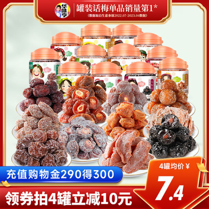 有珍珠李、雪梅、冰糖杨梅、九制梅、乌酸梅、老婆梅、盐津半李、冰糖杨梅等13种口味任选4罐,超市要15.9元/罐。古法制作,果肉饱满,个大肉厚,酸甜口感,开胃解腻,老少皆宜的小零嘴。