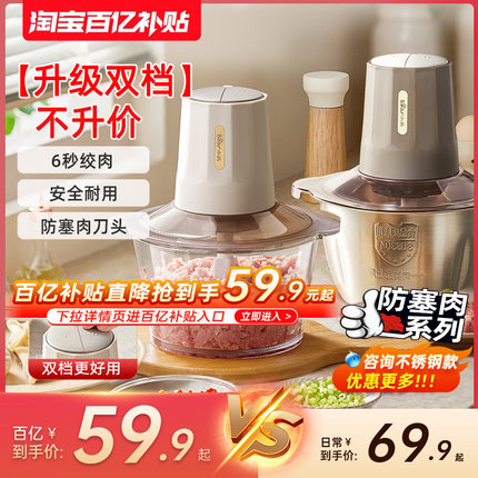 【凑单到手49元】小熊绞肉机,儿童辅食神器,2升大容量,双层四刀,6秒绞肉!一键开启简单易懂,快速上手,家用绞肉、宝宝绵滑辅食好帮手!