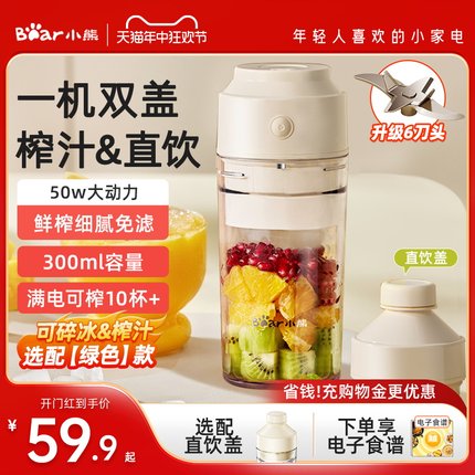 【凑单价更低】小熊无线榨汁机,一款随身携带的果汁杯!食品级母婴材质,耐磨耐摔,304不锈钢双刀片,大容量电池,口感更细腻,持久续航,果汁、奶昔想喝就喝!~