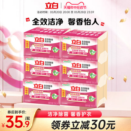 全效洁净,深层去渍,馨香怡人。目前天猫商城立白集团官方旗舰店售价¥65.9,领取¥30优惠券,实付¥35.9包邮,折合¥2.99/块。