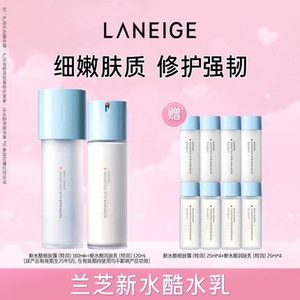 到手:细肤露160ml+润肤乳120ml+赠细肤露25ml*4+润肤乳25ml*4。特润型(适合中性/干性肌肤)清润型(适合油性和混合型肌肤)。微分子玻尿酸+益生菌发酵精粹,主打水润细嫩,修护强韧,平衡保湿肌肤。