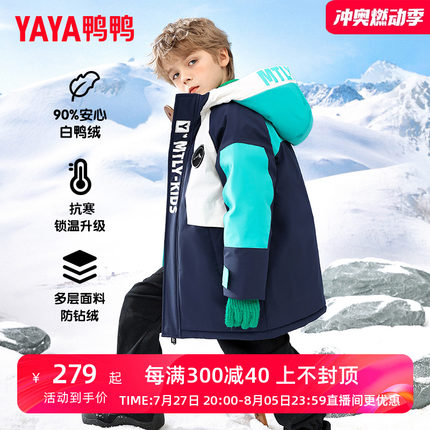 【鸭鸭】男童青少年儿童羽绒服,90%安心白鸭绒,抗寒锁温升级,多层面料防钻绒!腹部充绒量高,温度提升保暖更佳!防尘拒绝污渍,防水透湿干爽,防风保暖!