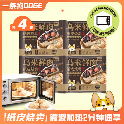 微波即食,一条狗 乌米鲜肉纸皮大烧麦 240g*4盒新低49元包邮(12.25元/盒)