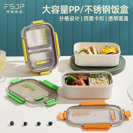1320ml~梵施家品上班族学生用分格餐盒,大容量PP/不锈钢饭盒,分格设计,四面卡扣,透明面盖,美味清晰可见~口福眼福两不误,安全健康无异味!