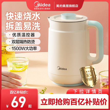 1.5升大容量1500W大功率,304不锈钢优质温控器,一壶能烧8杯水满足全家整日饮水需求告别频繁烧水