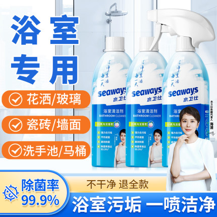 平均¥8.3/瓶,一瓶=瓷砖清洁剂+玻璃清洁剂+马桶清洁剂+水垢清洁剂+除菌剂+清新剂,针对浴室水垢,轻松洁净,进口原料,快速除垢净亮。清洁泡沫、细腻喷雾双功能喷头,解决多种污渍问题。