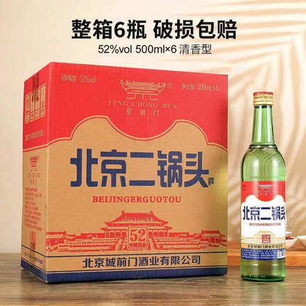 【正品带防伪码,可以提前拍,提前发货!酒是没有保质期的,可以先囤起来!500ml*整箱6瓶】北京正宗二锅头!纯粮食酿造!清香型高度白酒500ml*6瓶。送人佳品!品质有保障!【赠运费险,退换无忧】