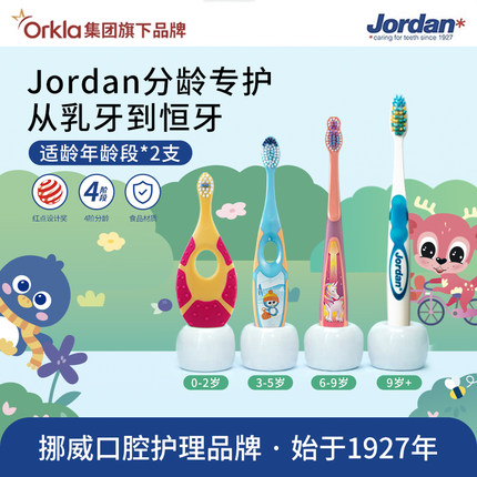挪威百年牙刷品牌,Jordan 进口儿童训练牙刷*2支 24.9元包邮
