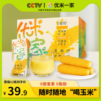 五芳斋旗下,优米一家 NFC鲜榨玉米汁200mL*12瓶整箱29.9元包邮