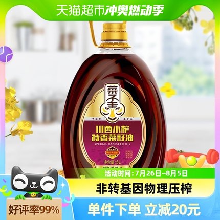 菜子王 非转基因 川西小榨特香菜籽油 5L 66.31元包邮