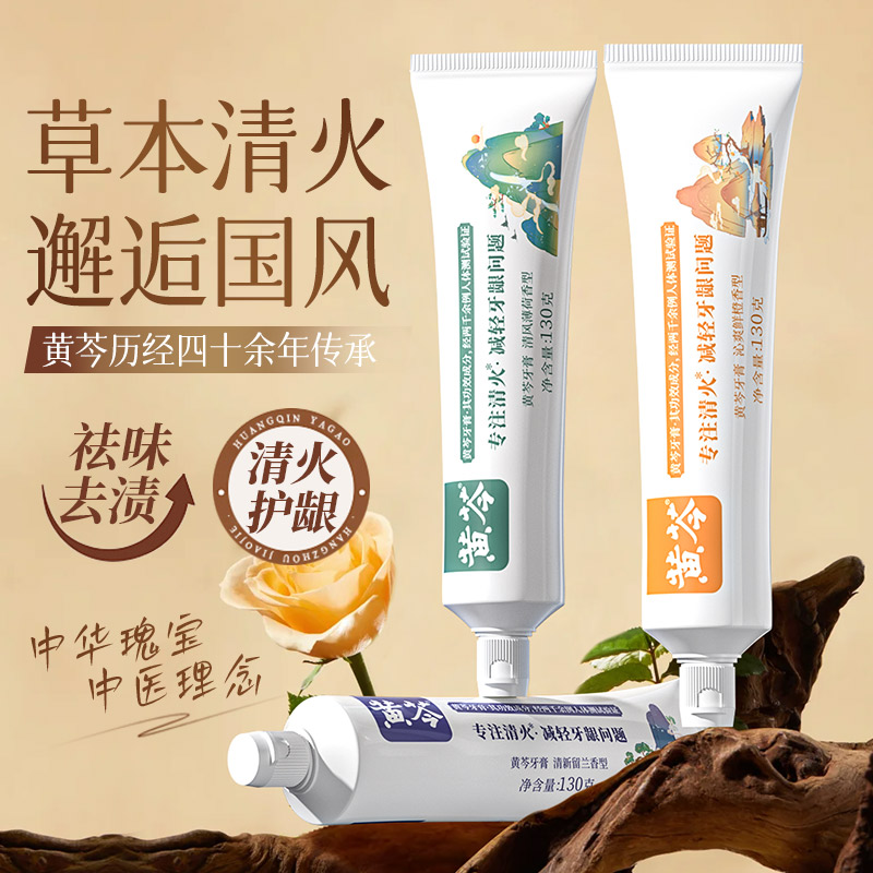 下单就送牙刷2支!黄芩中药牙膏,国潮来袭!均添加黄芩根提取物,针对不同的问题每支牙膏还有独特的成分添加。可缓解牙龈出血,牙龈肿痛,清新口气,抗敏感!趁着活动赶紧抢吧!