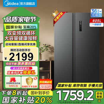 美的 净味系列 BCD-605WKPZM(E) 风冷对开门冰箱 605L 黑色。商品面价2198.38元,可领国补,实付单件1758.7元