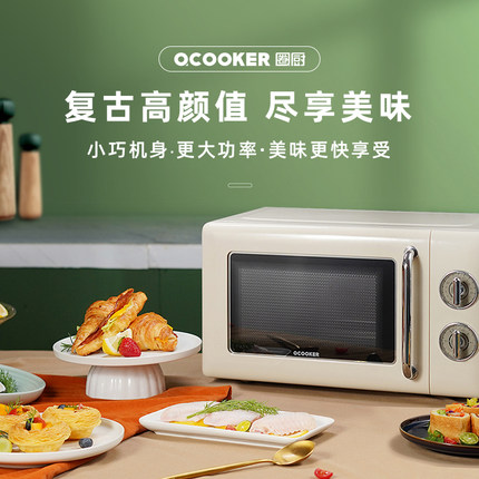 【页面价490-优惠券87-跨店满减73.50=到手价329元】五档火力30分钟定时,旋钮简易操作,老人孩子都能用!各种美食!加热快,各种美食早餐,商场一台打完折还要600多,我们一半价格圈厨经典复古转盘微波炉20升 券后403元包邮