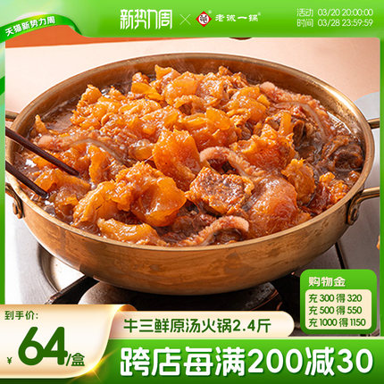 传统美食,甄选草原牛牛筋、牛肉、牛肚,原汤熬制,汤醇肉香,加热即食。目前1200g天猫商城老诚一锅官方旗舰店售价¥69,参与每满¥200-30跨店满减,领取¥5优惠券,APP端搜索下单返红包可领¥5红包,凑单电线(可T),牛三鲜到手实付¥51.73包邮,新低价。