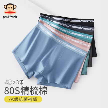 Paul Frank 大嘴猴 男士7A抗菌80S纯棉内裤3条装 多色26.97元包邮