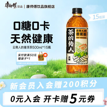 白菜!康师傅 茶的传人 闽南人的铁观音/云南人的普洱茶 500ml*15瓶新低23.64元包邮(1.6元/瓶)