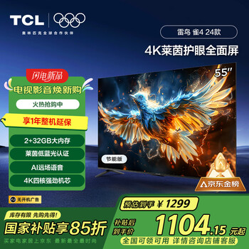 plus会员:TCL雷鸟 雀4 家电国家补贴 55英寸 以旧换新 4K超高清 平板电视55F270C-J 1099.8元