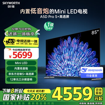 创维新品A5D Pro是行业首款内置回音壁,观影沉浸感ZUI好的Mini LED电视,商品面价5659元,领国补,还可打9.5折,4300.84元包邮
