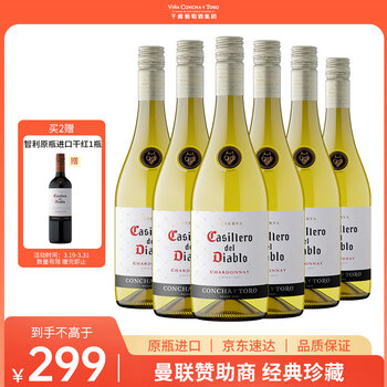 智利干露酒厂,红魔鬼 珍藏级 霞多丽干白葡萄酒750mL*6瓶新低224.05元包邮(折37.34元/瓶)