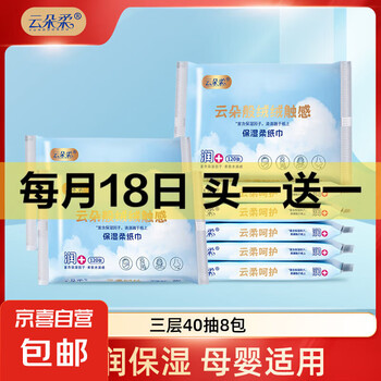 云朵柔保湿柔纸巾乳霜纸120张40抽/包*8包(买一送一) 7.99元