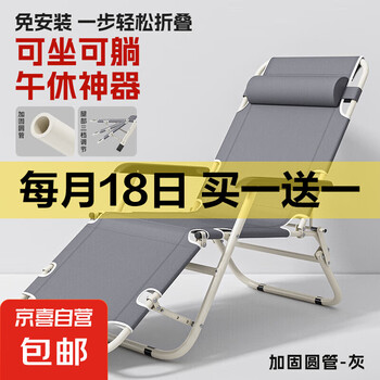折叠床 办公室午休神器 简易便携式行军陪护家用户外躺椅 圆管-灰色(60宽)*2件 75元(买一送一、合37.5元/件)