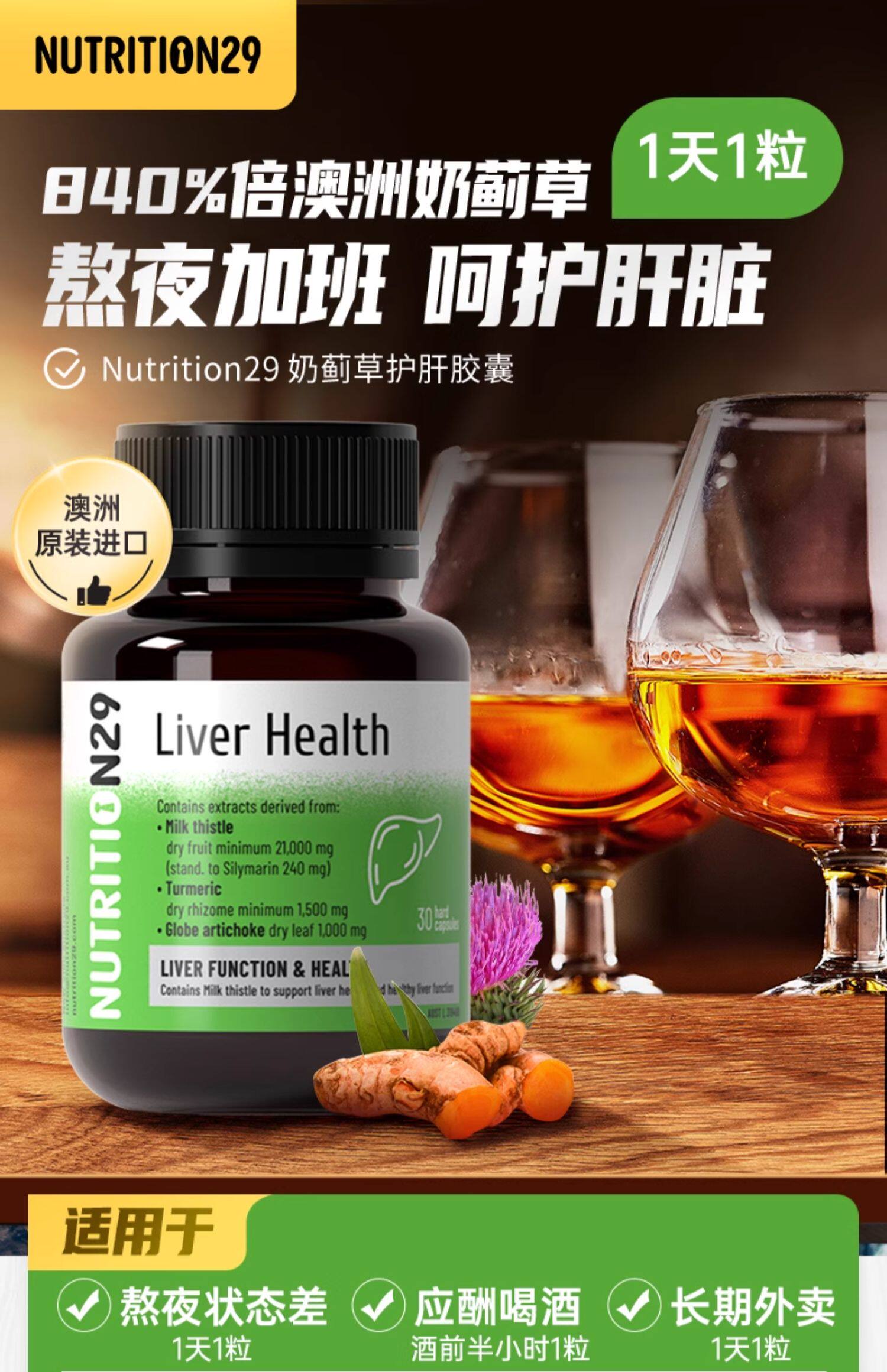 澳洲百年品牌,奶蓟草含量是普通产品的840倍,一粒含21g奶蓟草的提取精华,护肝成分是普通护肝片的好几倍,小胶囊更易吞服。目前天猫国际nutrition29海外旗舰店30粒/瓶售价¥100,下单立减叠加¥10优惠券,实付¥49包邮。